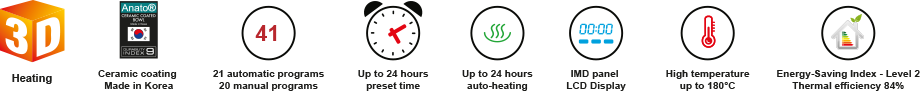 | وعاء | وعاء داخلي بسمك 2 مم مصنوع من خليط الألمنيوم و مغطى بطبقة سراميك من قبل شركة ANATO® كوريا. |